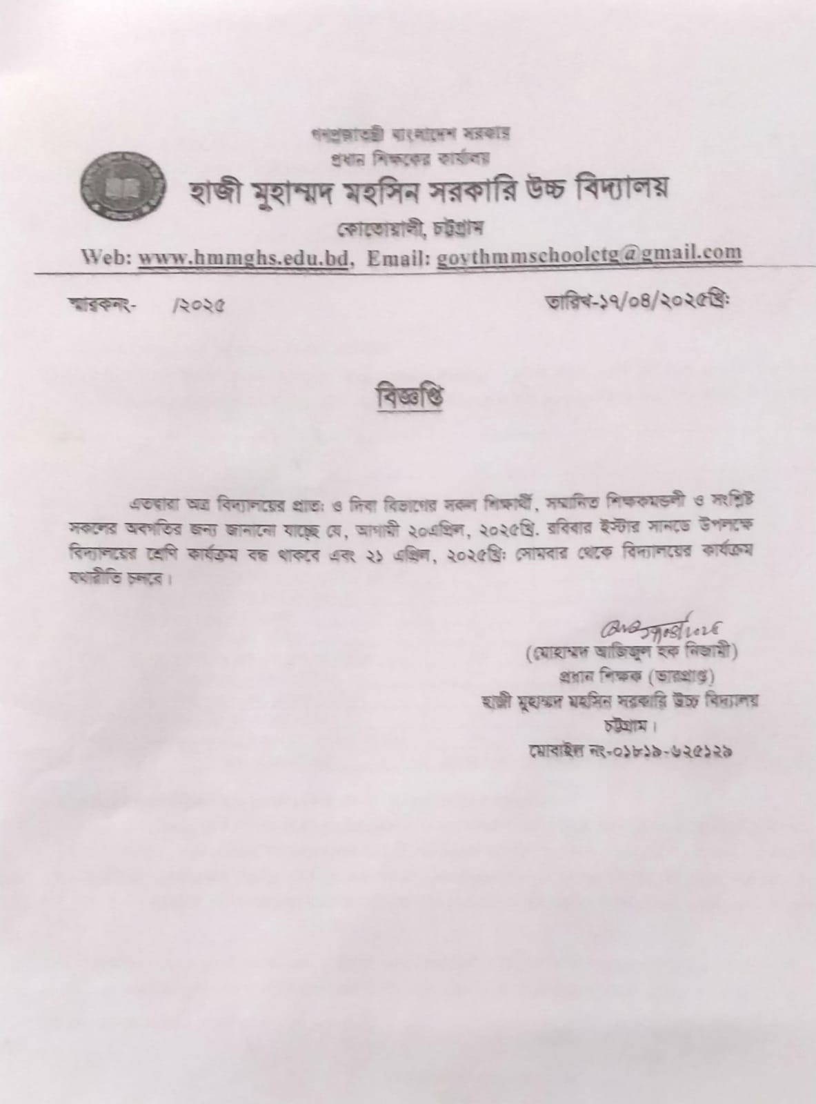 ইস্টার সানডে উপলক্ষে স্কুল বন্ধ থাকবে Publication’s Date: 2025-04-17
