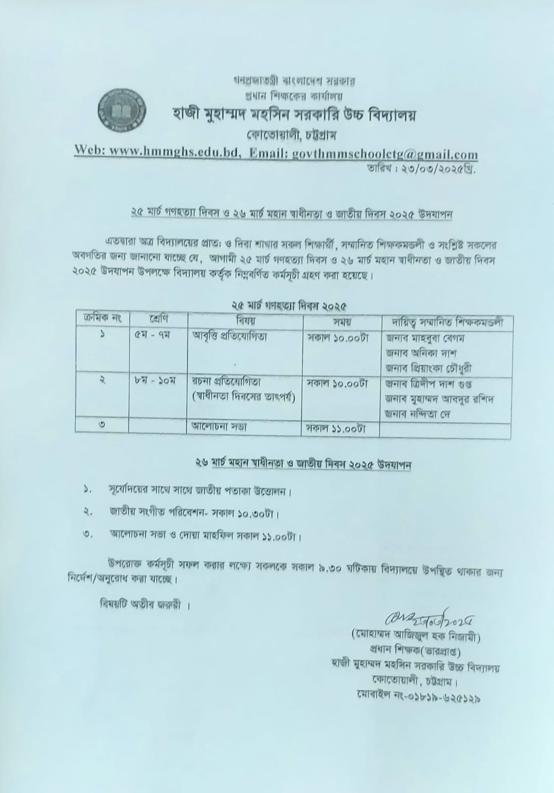 ২৫ মার্চ গণহত্যা দিবস ও ২৬ মার্চ স্বাধীনতা ও জাতীয় দিবস Publication’s Date: 2025-03-23